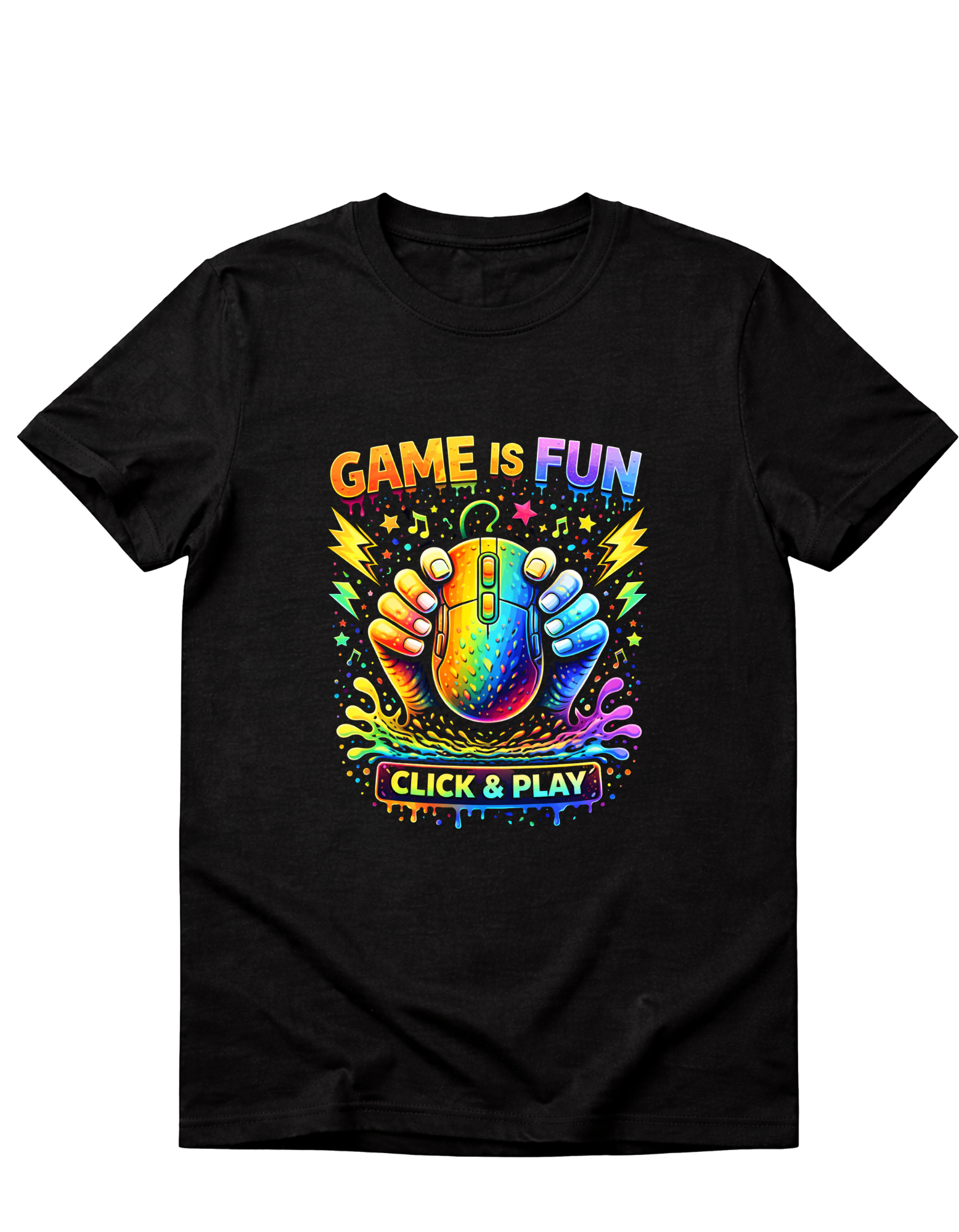 Idealna koszulka dla fanów gier komputerowych i konsol. Kolorowa grafika z napisem Game is fun oraz myszką do gier w neonowych barwach przyciąga uwagę i świetnie wpisuje się w styl młodzieżowy oraz gamingowy.