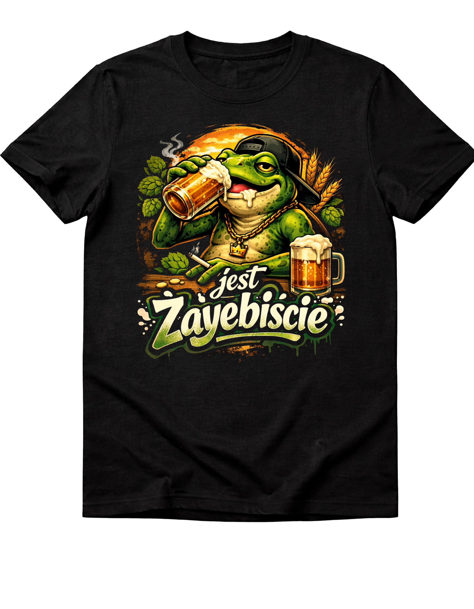 „Jest żayebiście” to tekst, który rozbawi każdego – idealny na imprezy, spotkania ze znajomymi czy grilla. Humorystyczna grafika i wyrazisty nadruk sprawiają, że koszulka przyciąga spojrzenia i wywołuje uśmiech.